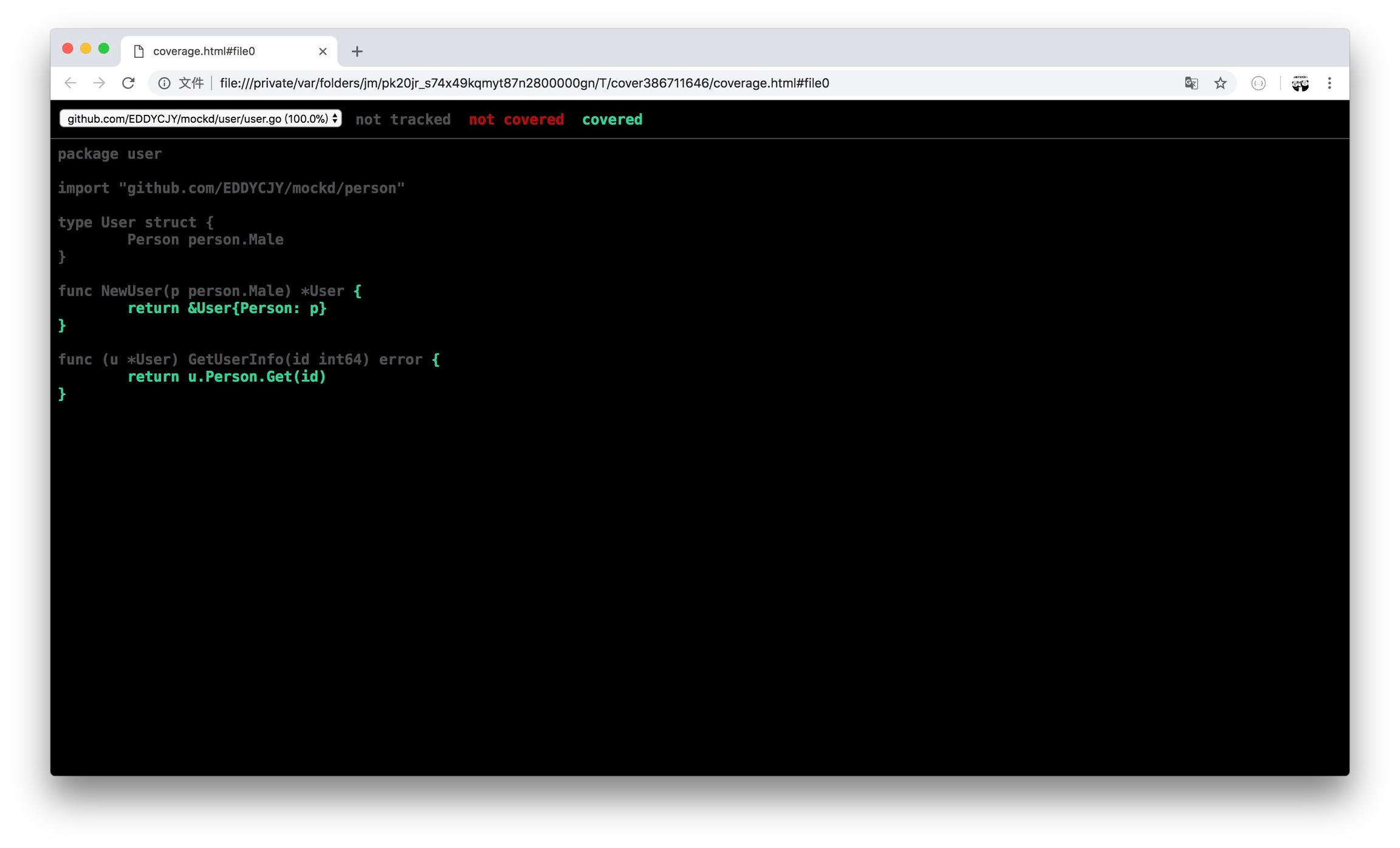 ok github.com/EDDYCJY/mockd/user (cached) coverage: 100.0% of statements