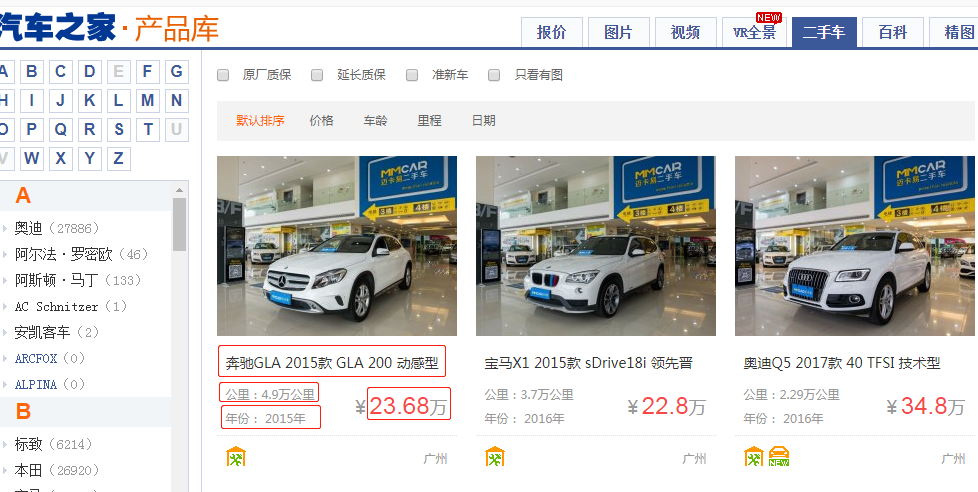 获取二手车数据