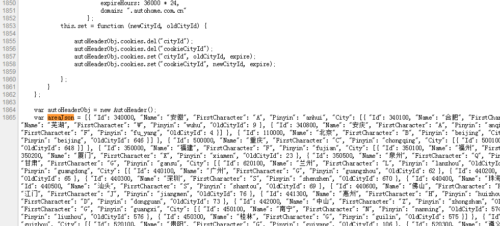 areaJson复制出来作为变量解析