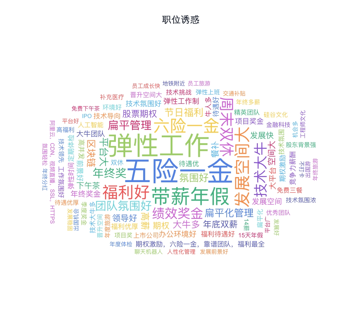 职位诱惑是投简历时必看的一点了,可以看到高频词条基本都是 IT 从业者关心的话题了,这里你懂的...