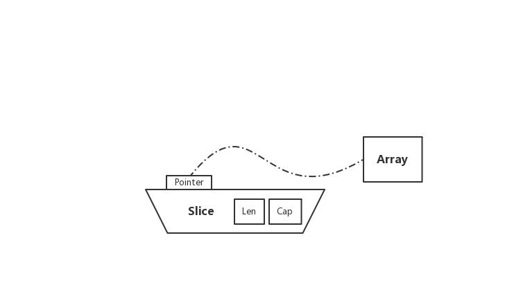 Slice 是对 Array 的抽象,类型为 []T。在上述代码中,dnums 变量通过 nums[:] 进行赋值。需要注意的是,Slice 和 Array 不一样,它不需要指定长度。也更加的灵活,能够自动扩容