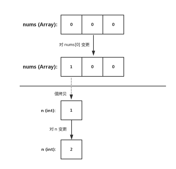 这时候内部就会重新申请一块内存空间,将原本的元素拷贝一份到新的内存空间上。此时其与原本的数组就没有任何关联关系了,再进行修改值也不会变动到原始数组。这是需要注意的